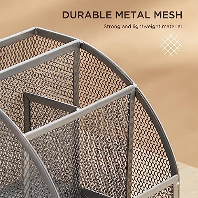 • 【SOPHISTICATED DESKTOP STORAGE】This desk organizer measures 8.7(L) x 5.5(W) x 5(H) inches and weighs 1.37 lbs. Mesh desktop organizer is perfect for dens, desks, dressers and workbenches, use it as a pencil holder, pen holder, desk organizer, makeup organizer or small tool organizer